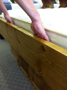 You can see how these measurements give owners an extra inch on all four sides. A super easy solution and you keep everything just the way it is with the exception of padded sided. You won’t need them anymore. No more climbing out of bed. The mattresses sit above your wooden side rails.