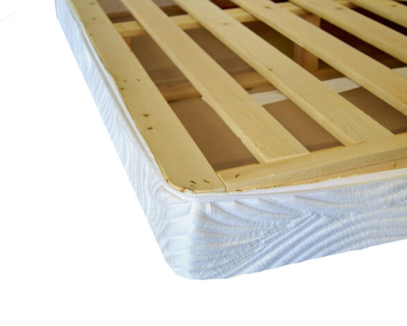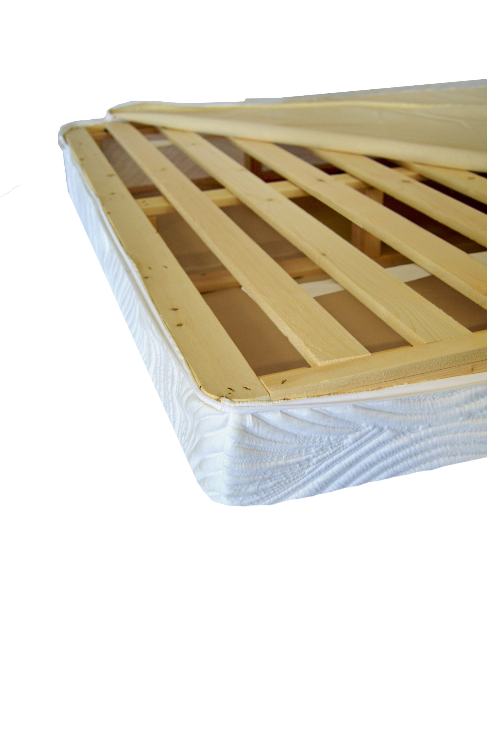 The STL Beds Quick Assemble Low Profile 5″ tall heavy-duty foundation can be used underneath virtually any type of mattress including memory foam beds, all bed in a box type of mattresses, latex mattresses, coil spring, pocketed coil beds, and hybrid beds. The slats are spaced 2 3/4 apart to provide the necessary support for all of the listed mattresses.