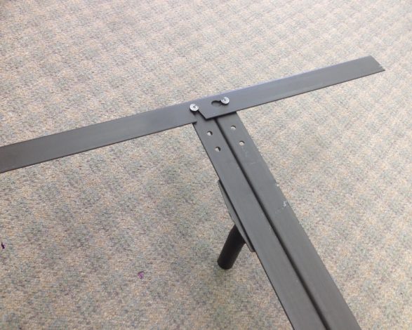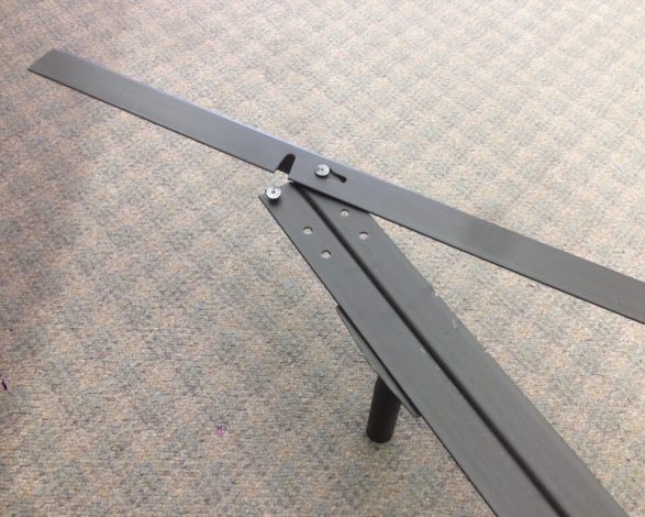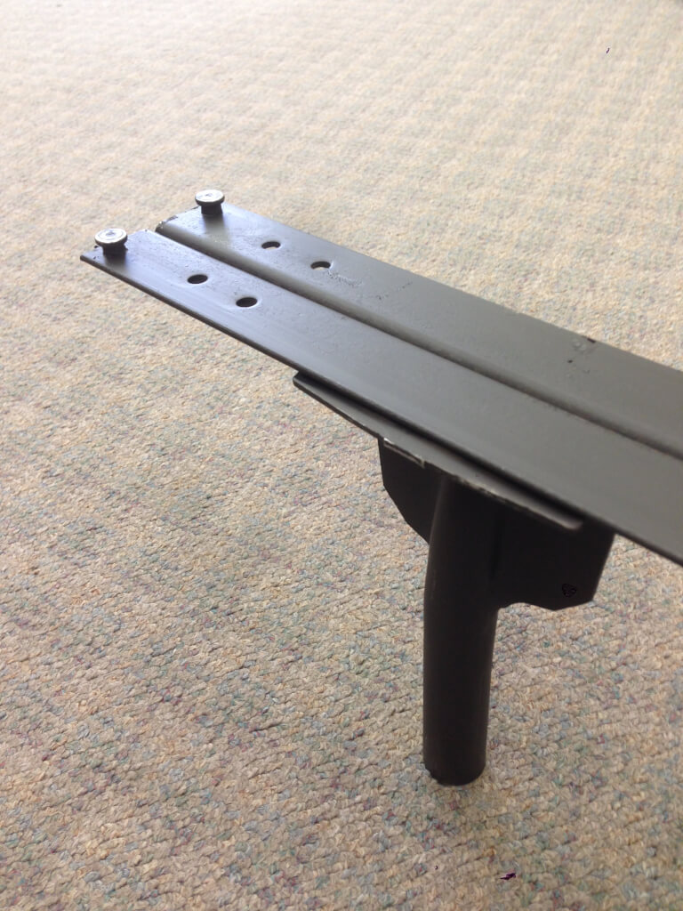 LB 44 Low Profile King Bolt Up bed frame allows you to lower the height of your King size mattress by 3 ½ while still bolting up to the original mounting holes in your headboard. It can also be a free standing or stand alone style bed frame. Easy to assemble: Insert the four feet, unfold the heavy duty angle iron ends and insert male rivet into female keyhole slot. Use the bolts, nuts, and washers that came with your current headboard. It is that easy. The best part is that is made right here in the USA!
