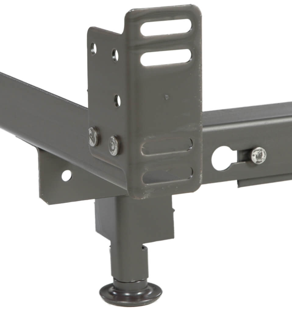 LB 34 Low Profile Queen bed frame allows you to lower the height of your Queen size mattress by 3 ½ while still bolting up to the original mounting holes in your headboard. It can also be a free standing or stand alone style bed frame. Easy to assemble: Insert the four feet, unfold the heavy duty angle iron ends and insert male rivet into female keyhole slot. Use the bolts, nuts, and washers that came with your current headboard. It is that easy. The best part is that is made right here in the USA!
