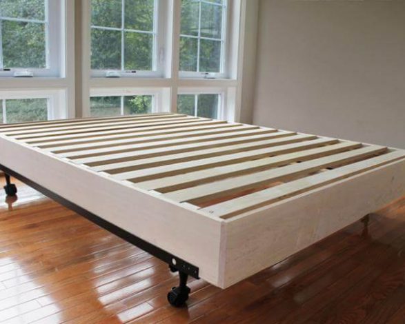 The queen platform bed foundation is constructed of solid maple framing and hardwood poplar slats this insert fits directly inside your current steel bed frame or existing headboard, and footboard, with wooden side rails without changing a thing. Another thing to consider is that it can even be used to add extra height to an existing platform bed.
