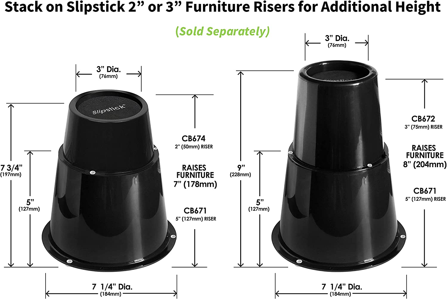 - Available in 2”, 3”, 5” heights